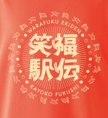 本大会のために制作された笑福駅伝公式Tシャツは、中央に大胆に配置されたロゴに、青森らしさを象徴するりんごのモチーフを組み込んだ特別デザイン。